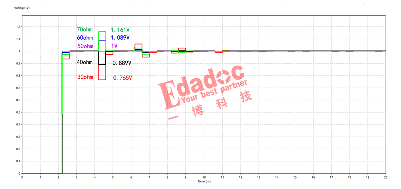 TL1设置阻抗分别为30,40,50,60,70ohm,延时0.2ns;