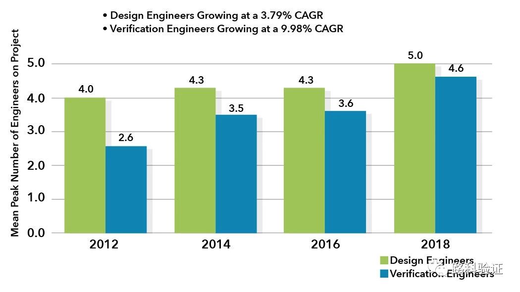 虽然平均而言,设计工程师的需求增长率约为4%CAGR( 复合年增长率),与IC / ASIC类似,但对验证工程师的需求正以约10%的复合年增长率增长。值得注意的是,在2007年至2014年期间,IC / ASIC市场经历了与验证工程师类似的增长需求,以应对不断增长的验证复杂性[3]。
