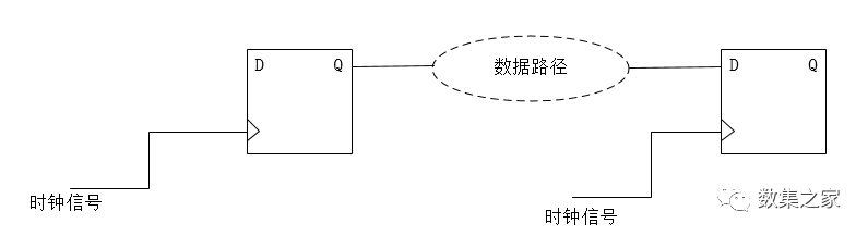 这种时序路径表示始发点为时序单元的时钟输入端和终止点为时序单元的数据输入端之间的时序路径,由于其始发点和终止点在设计内部都是可见的,所以也称为内部时序路径,如图下图所示。