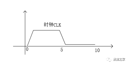 时钟周期也称为震荡周期,定义为频率的倒数,如下图所示为一个周期为10的时钟信号波形。
