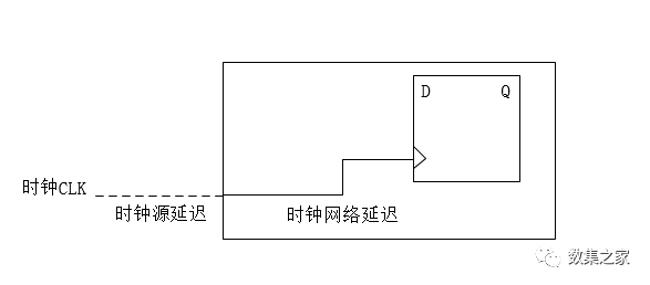 时钟延迟是指时钟信号从时钟源输出端口到达时序单元时钟输入端口所需要的传播时间。