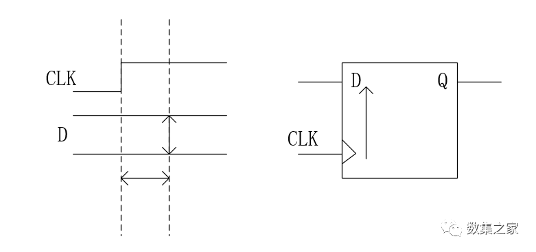 如下图所示,在时序单元时钟高电平有效沿之前,信号必须已经有效的时间信息即通过建立时序弧表示。