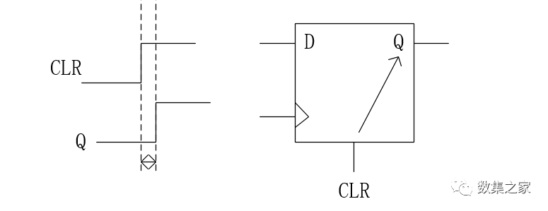 复位清零时序弧用来表示具有复位清零端口的时序单元从复位清零信号有效沿到输出信号有效沿的延时信息。