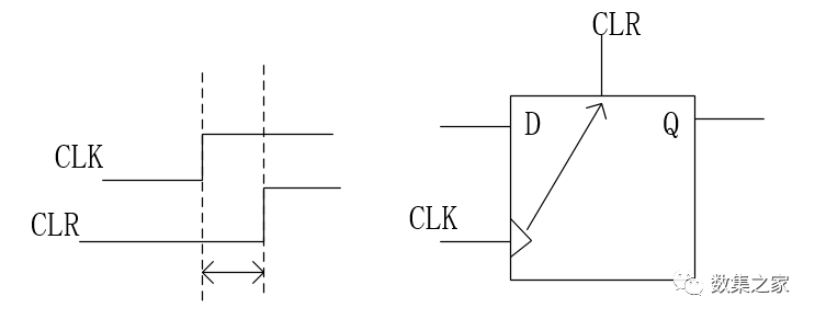 如下图所示,在时序单元时钟高电平有效沿之前,清零信号必须提前有效的时间信息即通过恢复时序弧表示。