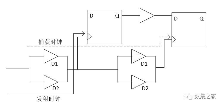 发射时钟最慢路径延时+最慢数据路径延时≤捕获时钟最快路径延时+时钟周期-终止点时序单元建立时间