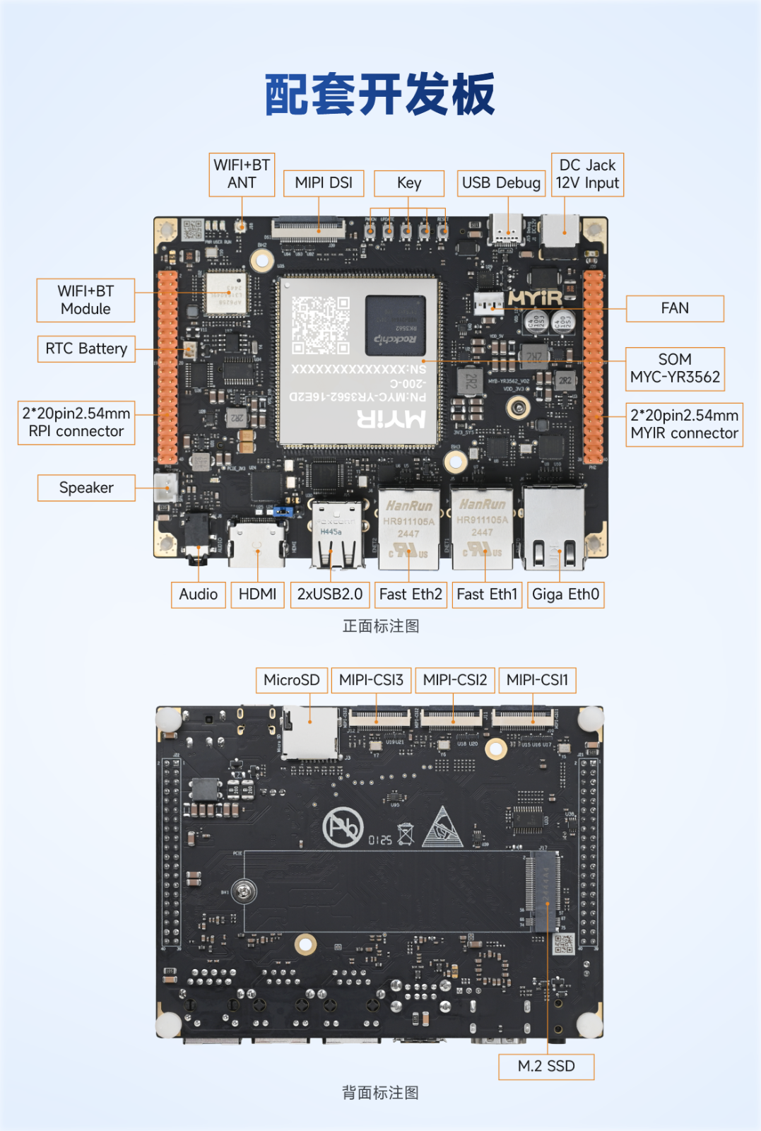 根据主芯片、存储器件参数的不同,MYC-YR3562核心板细分为3种型号。