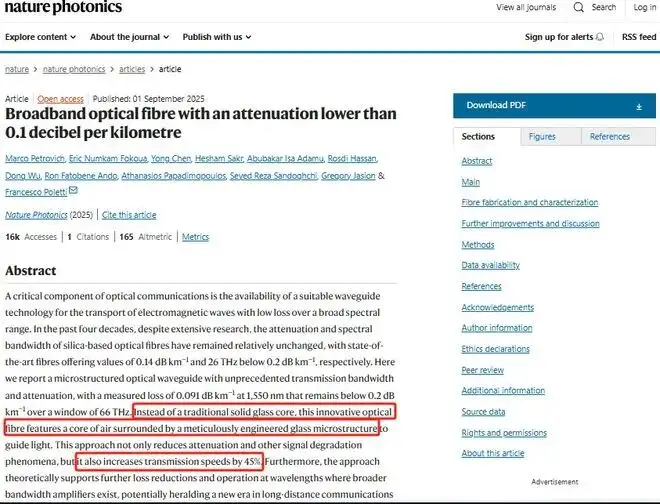 光通信技术重大突破!微软团队顶刊发文:新型空芯光纤打破物理极限