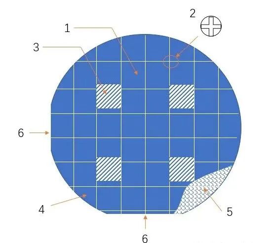 晶圆定位边(wafer flats)/凹槽(notche):图示的晶圆由主定位边(major flat)和副定位边(minor flat),表示这是一个P型<100>晶向的晶圆。300mm和450mm直径的晶圆都是用凹槽作为晶格导向的标识,和定位边晶圆相比,凹槽晶圆可以制造更多的晶粒,因此效率很高。