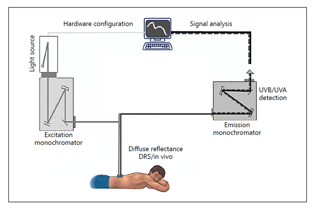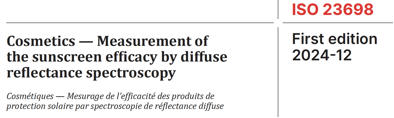 ISO 23698:2024是体内和体外相结合的测试方法,其原理是通过漫反射光谱仪(DRS)测量皮肤的UVA吸收,并结合体外分光光度计测量薄膜透射率来评估UVB吸收,从而生成混合吸收光谱,以计算UVA-PF、SPF和临界波长(λc)。