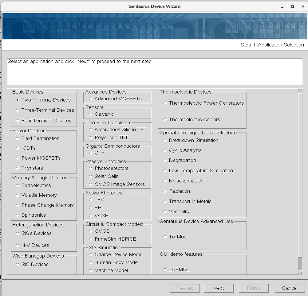 包括:场环、IGBT、晶闸管、铁电、非挥发存储器、相变存储器、自旋器件、SiGe/三五组异质结器件、SiC器件、磁传感器、非晶硅、多晶硅TFT、有机OFET、光电探测器(SPAD、PD等)、太阳能、LED/EEL、VCSEL、CMOS、PrimeSim HSPICE、ESD、热电器件、以及击穿、周期性求解、退化、低温仿真、噪声分析、各种材料(Ge、Si、SiC、GaN、GaAs)的辐照(伽马、x射线、阿尔法粒子、质子辐照)仿真,可以说应有尽有,可以帮助我们快速的形成工程。